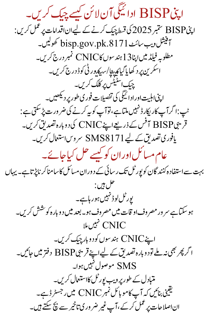 Follow these steps to check your BISP September 2025 installment: