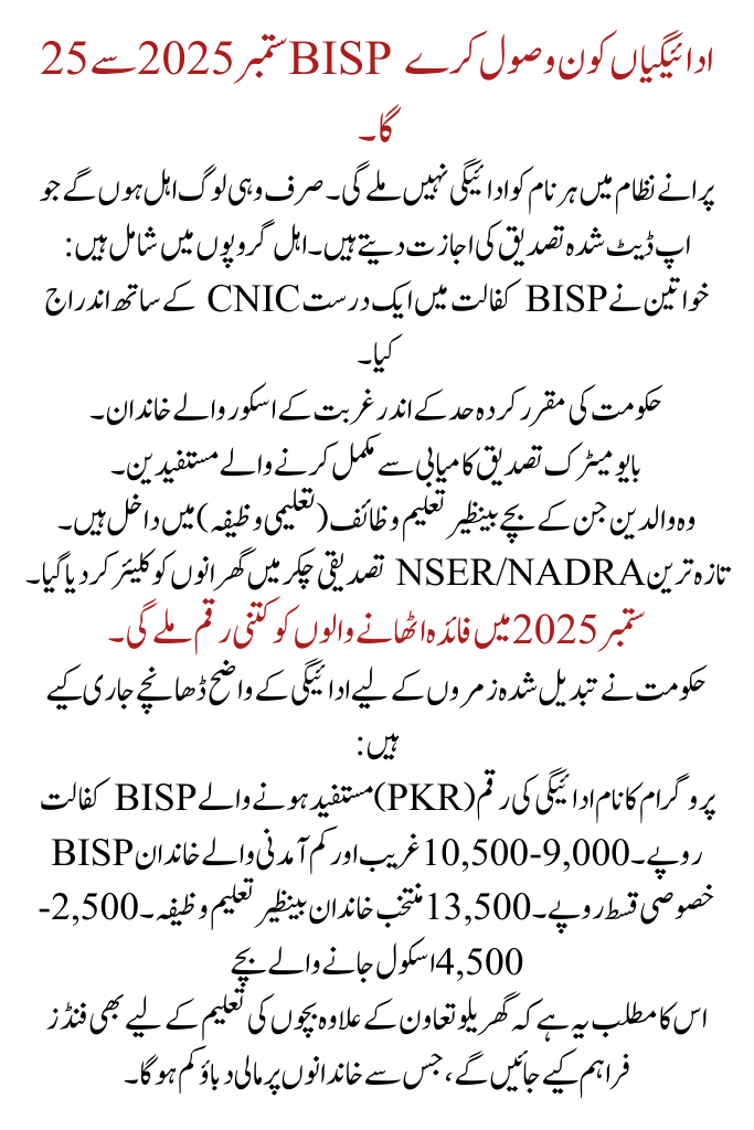 | BISP Special Installment | 25 September 2025 | Ongoing | Rs. 13,500 | Automatic |
